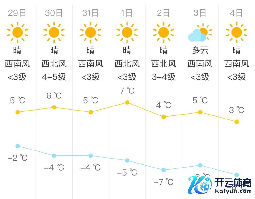 北京市征象台29日9时发布:今天白昼晴间多云,北转南风二三级,最高气温5℃;夜间晴,南风一级转北风三级,最低气温零下5℃。今天白昼清明微风开云体育,午间较适应户外行径;未来北风加大,阵风彰着,出行在意防风防寒防火,防御伤风和心脑血管疾病的发生。