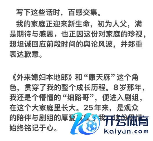 在复兴长文中,李俊毅称,我方 8 岁那年干涉剧组,并在这个各人庭里长大。2021 年,其家东谈主出现了严重的健康问题,需履历漫长的调节与手术,后续也因此堕入了心焦与抑郁症的感情低谷。2022 年头,在剧组场地以"康天庥"为干线,鼓舞新剧情场地时,李俊毅称既但愿将更多本事伴随她康复,也畏忌关系情节会对她的身心形成独特包袱。同期,为了不影响剧组的举座安排,在反复疏浚明,奋发地作念出辞演决定。李俊毅称,如今我方的家庭正迎来新人命,与太太联袂走过 8 年,算作丈夫但愿能保护好她和未设立的宝宝,并为此前不够锻练的搪塞姿色带来的影响致歉。