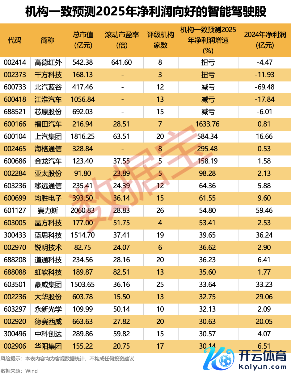 机构一致估量2025年净利润向好的智能驾驶股一览机构一致估量2025年净利润向好的智能驾驶股一览