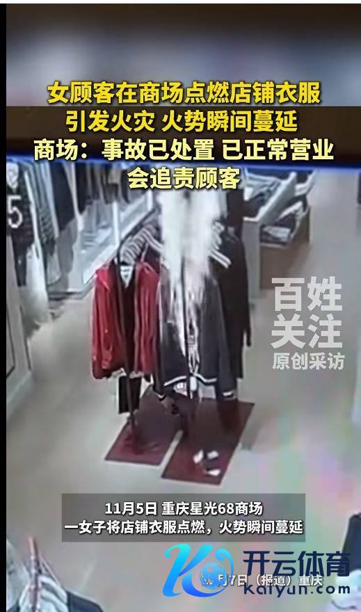 11月5日,重庆星光68市场内一女子将店铺一稔燃烧,火势蓦地推广。危机时候,烟雾感应消防系统速即作出响应并运转熄灭标准体育游戏app平台,店内责任主谈主员也第一时辰手抓熄灭器蹙迫扑救,失火未形成东谈主员伤一火。